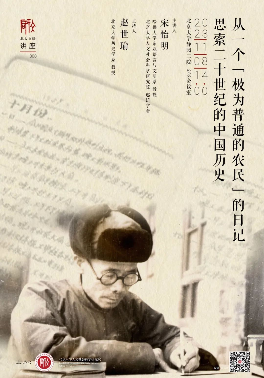 讲座预告 | 宋怡明:从一个“极为普通的农民”的日记思索二十世纪的中国历史