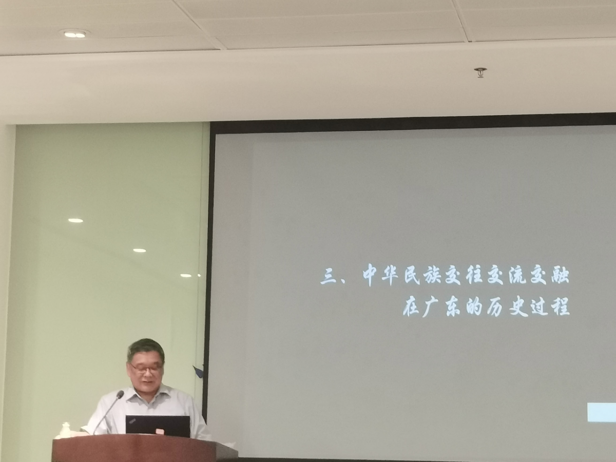 三是中华民族交往交流交融在广东的历史过程。刘志伟老师指出,认知这一过程应注意编户齐民与化外之民这对概念,而不是汉族与少数民族。刘老师简要说明了广东中华民族共同体形成的历史进程,包括岭南地区远古时期的人群,王朝时期岭南地区的族群,明代以后广东地区的“民-蛮”社会和清代以后回族、满族的本地化。最后,刘志伟老师讲述了中华民族交往交流交融在广东展开历程的几个特点,包括土著人群种类繁多;活跃在山海之间,流动性强,交往频繁;族群身份和标签都是在王朝国家体制下形成和演变;多元化和一体性互相加强;在矛盾和冲突中形成民族共同体;以文化创造方式铸牢中华民族共同体意识。刘志伟老师还以珠玑巷为例阐发了自在的中华民族共同体形成的表现方式。