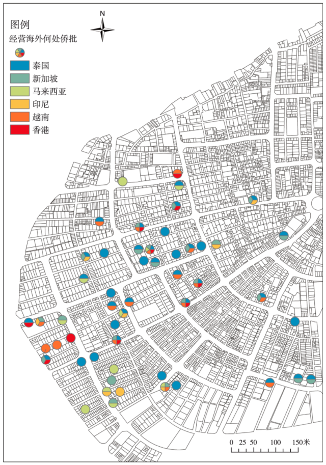 在南粤古驿道重要节点——汕头的研究上,研究中心充分利用已有的跨学科优势,运用历史地理学的方法和理念对汕头埠的城市发展进行研究。比如中心团队通过GIS技术展现了20世纪40年代汕头埠侨批业的空间分布情况,反映了侨批业经营网络与潮汕地区海外华侨等信息的密切联系。